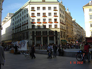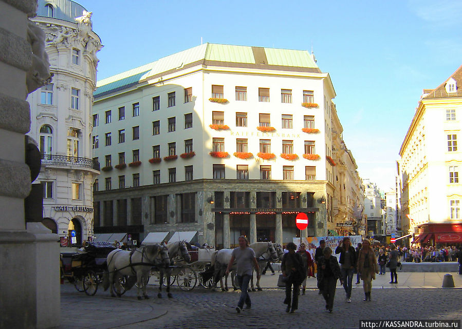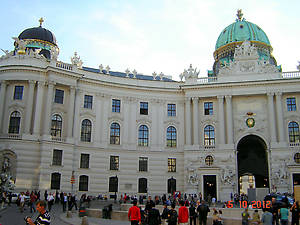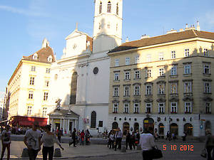 Огромный дворец имеет сложное строение. К нему можно выйти от собора св.Стефана. Пройдя по улице Грабен, повернув на улочку Кольмаркт, оказываешься на площади Архангела Михаила.