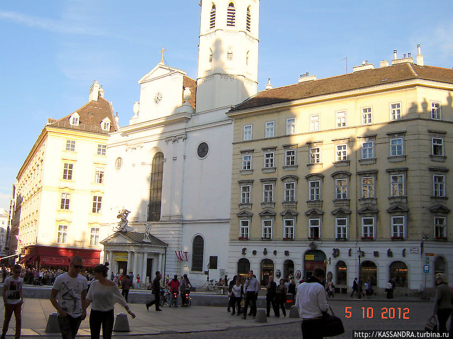 Справа на площади расположена церковь Архангела Михаила (Michaelerkirche).
