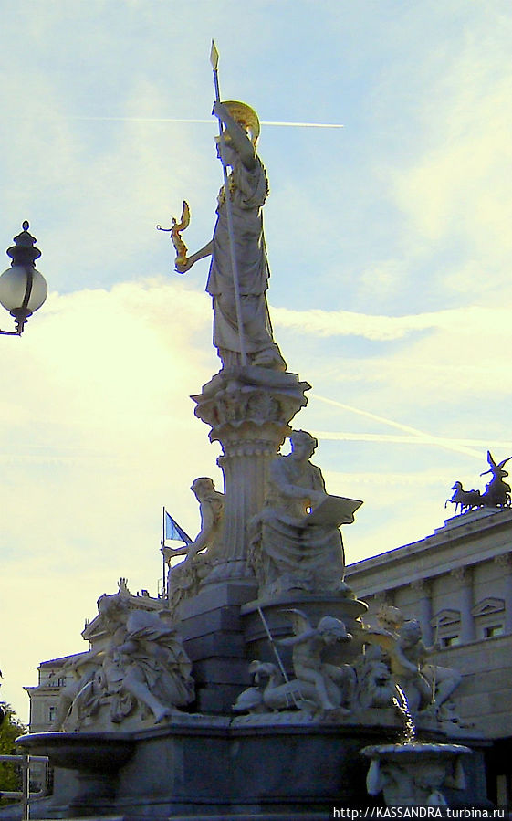 Фонтан перед зданием Парламента особенно эффектно смотрится со стороны Рингштрассе.