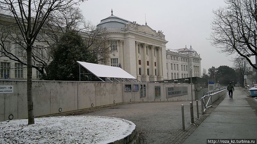 Музей находится недалеко от Шёнбруна. Мы поехали на метро и вышли на станции, которая ближе к зоопарку, и зря. Шли мы достаточно долго вдоль шоссе, огороженного от тротуара забором. Вспомнился фильм "Приключения желтого чемоданчика", где Пельцер говорила:"Неужели нет конца этому бесконечному, бесчеловечному забору..."