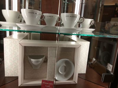 Даже рождественские украшения – оригинальны. Во всяком случае, я больше нигде не видела перевернутой елки.Говорят, ни в каком другом кафе не бывало столько гениев, как в этом. Впрочем, мне хватило Климта. Большой выбор завтраков и есть возможность собрать свой. Кофе не менее роскошный, и увы, не более вкусный.