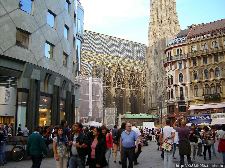 Австрийский архитектор Ханс Холляйн за 5 лет до строительства Дома Хааса получил Притцкеровскую премию. Эта награда присуждается ежегодно за достижения в области архитектуры. Премия широко известна в мире и считается аналогом Нобелевской премии. Коммерческий проект здания не оправдался-магазины здесь не прижились, торговля в Доме Хааса успеха не имели. Но здание имеет популярность у туристов. Было ли задумано архитектором, или так совпало, но на стеклянной поверхности здания отражается, как в зеркале, и удваивается красота собора Св. Стефана. Я думаю, что Ханс Холляйн знал, что он делает.