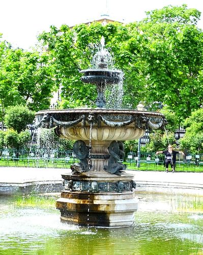 Посмотрели на фонтаны. Один из них "Тритон и Нимфа". Это целая скульптурная композиция посреди бассейна. Фонтан изображает вырывающуюся из рук демона прекрасную девушку.