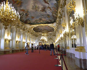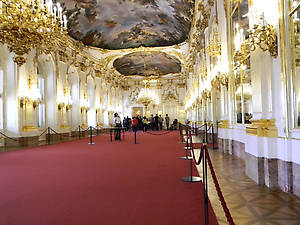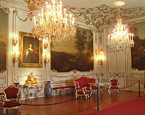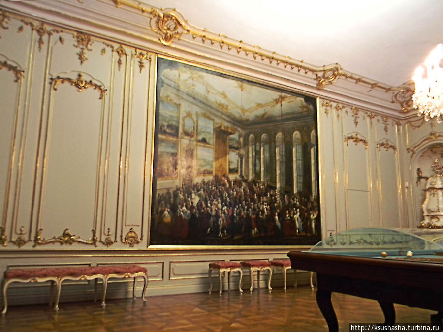 Большая галерея — место балов, приемов и праздничных банкетов. Огромный зал, длиной около 40 метров, оформленный в стиле рококо, был идеальным местом для проведения придворных празднеств.
