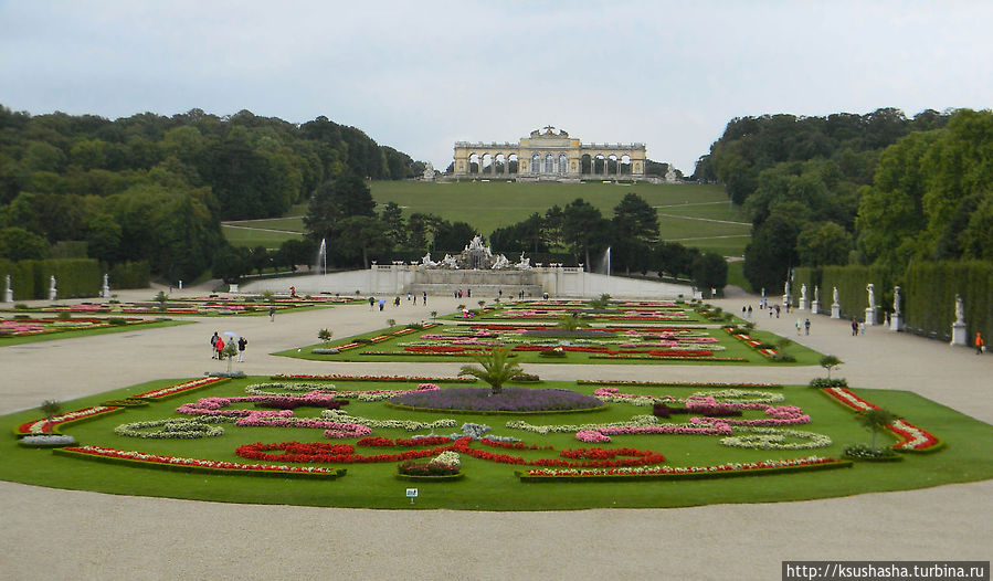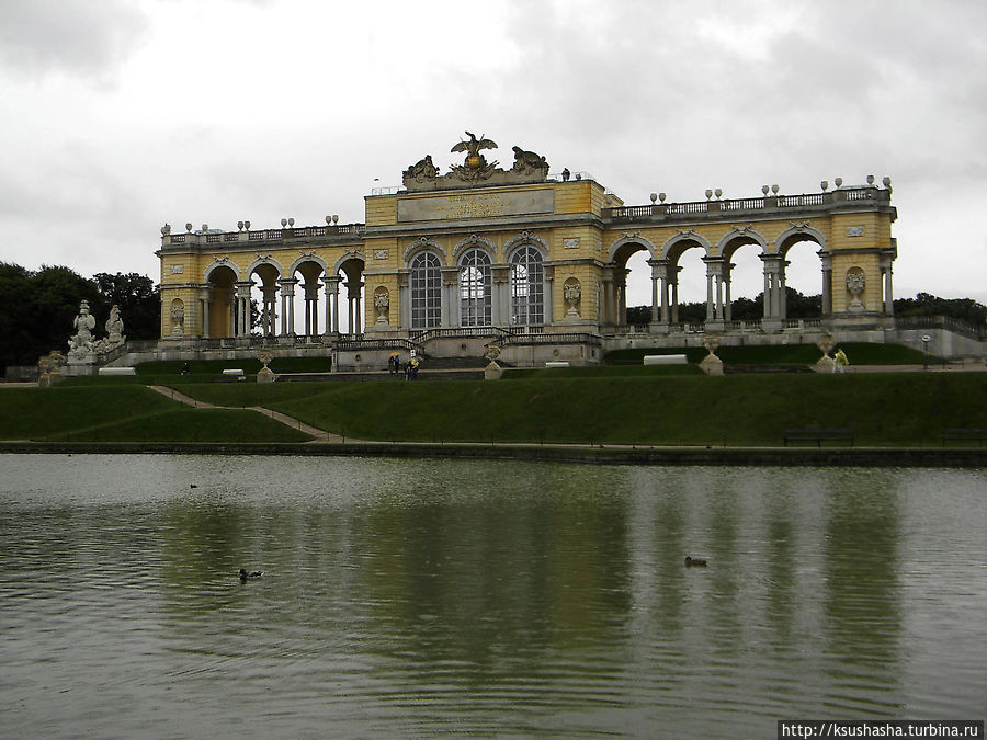 Добравшись до верхней точки парка, которую украшает колоннада павильона Глориетта(1775 г.), можно посетить кафе. Замечательно, что во время реставрации старая конструкция Глориетты осталась практически нетронутой. Отсюда открывается вся панорама дворцового комплекса и Вены вдалеке.