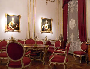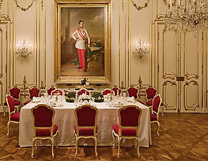 В покое, называемом комнатой Марии Антуанетты можно увидеть стол, убранный в характерном стиле венского двора. При Франце Иосифе это была столовая, в которой проходили трапезы монархов , в строгом соответствии с придворным этикетом.