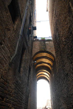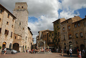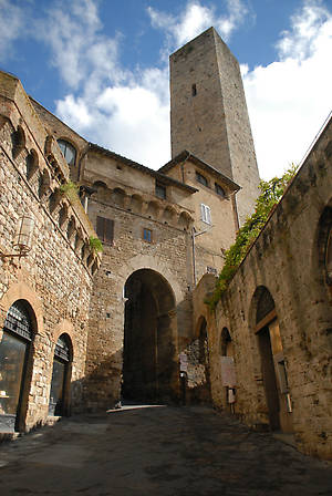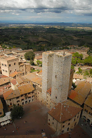 Облик Сан-Джиминьяно не возможно спутать с другими сохранившимися средневековыми итальянскими городами из-за устремившихся в небо старинных каменных башен. Которые особенно хорошо выглядят на общей панораме города и очень впечатляюще когда подходишь к ним вплотную. Просто удивительно, что в этом крохотном городе есть футбольная и баскетбольное поле, я это заметила с одной из башен.
