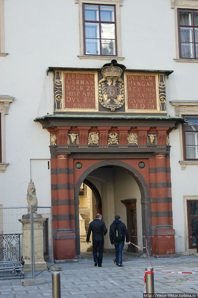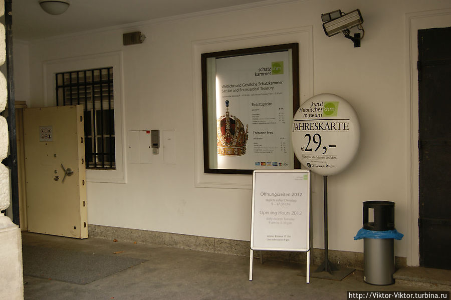 Под Придворной капеллой, практически в полуподвальном помещении, за тяжелой бронированной дверью, и находится вход в сокровищницу дворца Хофбург.