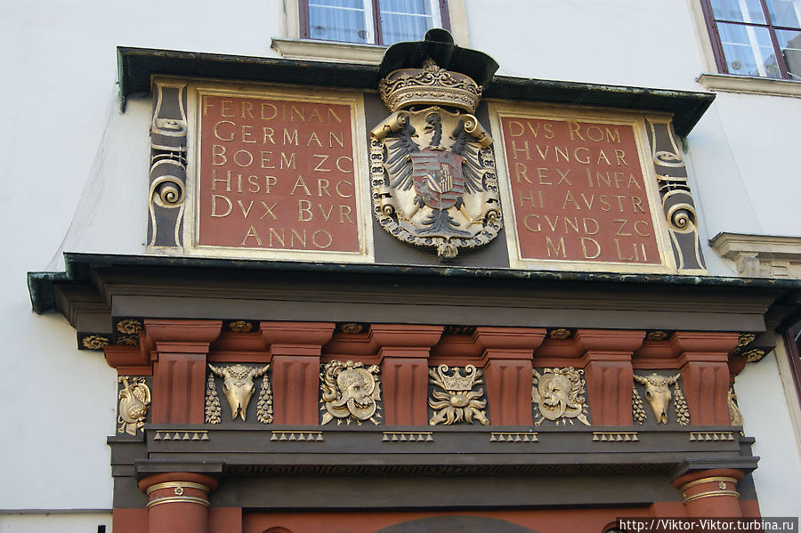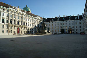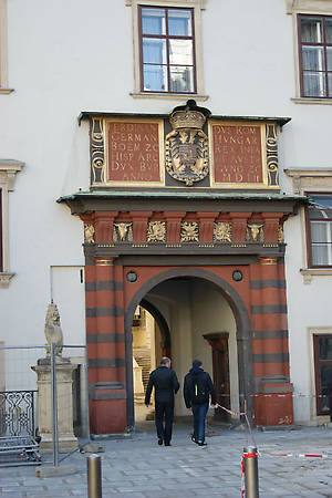 Швейцарские ворота старого Хофбурга были построены в 1552 году по приказу Фердинанда I. Правитель получил Австрию в подарок и таким образом решил обозначить свой социальный статус. Золотыми буквами на воротах выгравирован длинный список владений Фердинанда I, в том числе упоминается Венгрия, Испания и даже Рим. Последние буквы «ZC» обозначают аббревиатуру «и т.д.», символически подчеркивая, что территория может быть расширена.