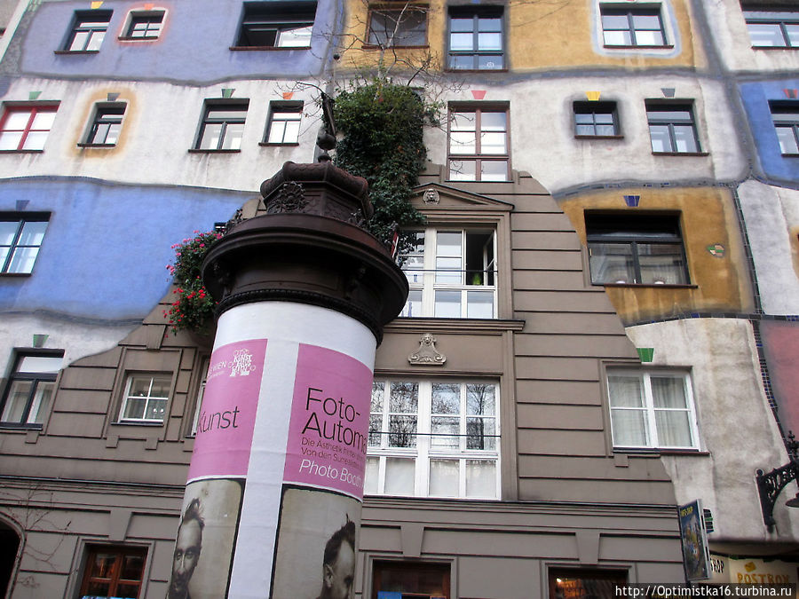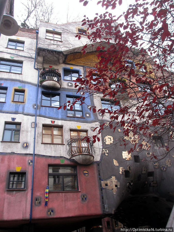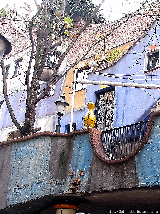 Вот и об этом художнике и его необычном доме я узнала, как ни странно, не от дочки, которая уже три раза побывала в Вене и даже хранила дома альбом на русском языке про художника и его творение, и не от подруги детства, которая любит Вену больше других городов и бывает там очень часто, чуть ли не каждый год, а от Нины Пастуховой, побывавшей первый раз в Вене совсем недавно и написавшей очень интересную запись в блоге