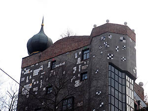 "Творчество Фриденсрайха Хундергвассера можно по достоинству оценить только при понимании того, что такое трансцендентность и духовное начало. Через чувственность к осмыслению сути, через самопознание к всеобъятию: купола луковичной формы — символы культовых сооружений — свидетельствуют о том, что Бог проживает в каждом доме"