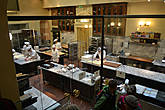 Предварительно стряхнув зонт от дождя, я зашёл в кафе и как-будто оказался в атмосфере салуна голливудского фильма о Диком Западе. Душно, неопрятно, тесно, полно разношёрстного народа. Аналогию с фильмом подтвердило и то, что, когда я зашёл, вооружённый собранным зонтом и фотокамерой, все как-будто притихли, обратив свои взоры в мою сторону. То ли я выглядел как-то экзотично, то ли мой зонт выглядел угрожающе, то ли закрывшаяся за мной дверь издала чрезмерный шум.