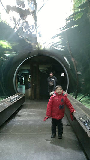 Мы пришли так рано, что некоторые вольеры еще чистили работники, а их обитатели терпеливо ждали в загонах. В основном животные находились в своих домиках: теплолюбивые обезьяны, крысы, панды, коала, бегемоты... но некоторые животные были под открытым небом. Меня удивило, что мартышки (видимо выведенные Корпухиным из "Гаража") были вместе с горными козлами. Внук первый раз увидел пингвинов, они плавали, точнее торпедировали в открытом бассейне и были такими забавными. Я первый раз увидела панд, коала, мишку гамми и мангуста. Павлин, почему-то, расхаживал по дорожке и повсюду прыгали белки-попрошайки. Мы хотели увидеть кормление животных, взяли расписание, но так и не увидели, видимо в холодное время кормление проводят как-то без посторонних глаз. Кое-где были спрятаны аквариумы с рыбками и есть отдельное здание с земноводными и рыбами. В здании с тропическими обитателями мы чуть не сварились, всевозможная оптика запотела и стало ужасно душно, поэтому мы быстро вышли, иначе пришлось бы вызывать мне скорую (не переношу жару и духоту).