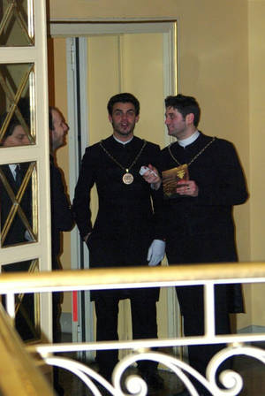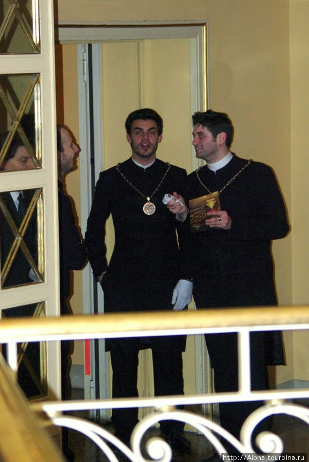 Вместо старушек-билетерш, которые заправляют в наших храмах Мельпомены, в «Ла Скала» спектакль сопровождают молодые люди из музыкальной ассоциации. Все красавцы и красавицы, с большими бронзовыми бляхами на шее. Они и до места буквально за руку доведут, и проблемы в случае чего разрулят.