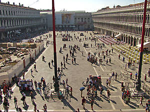 Со второго этажа, где располагается музей, открывается прекрасный вид на сам собор. Здесь же находится скульптура бронзовых лошадей, шпалеры, мозаика и церковные книги. В конце обхода рекомендую выйти на балкон, с которого видно всю площадь Сан Марко как на ладони. Для лучшего вида можно подняться, конечно же, на колокольню напротив, но там за подъем берут 9 евро и не щадят даже детей, с которых требуют по четверке. Так что побор в 22 евро ради одного вида для маленькой семьи, я считаю не обоснованным.