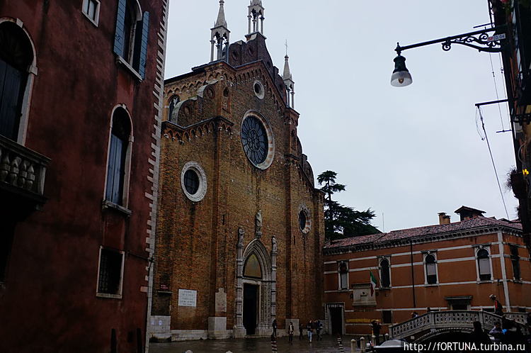 Сам собор Санта Мария Глориоза дей Фрари выстроен в форме латинского креста с центральным нефом и двумя боковыми приделами. На самом ее верху расположена смотровая площадка, с которой открывается захватывающий вид «города на воде».