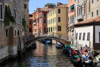 Но Гранд канал конечно же это ещё не вся Венеция и мы помня об этом, улучив удобный момент, покидаем палубу нашего ватербаса и с головой ныряем в одну из сотен её улочек, перебираясь с одного островка на другой по заботливо перекинутым через каналы мостам, быстро отрываемся от кипящей водной жизни Гранд канала.