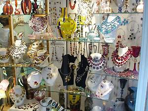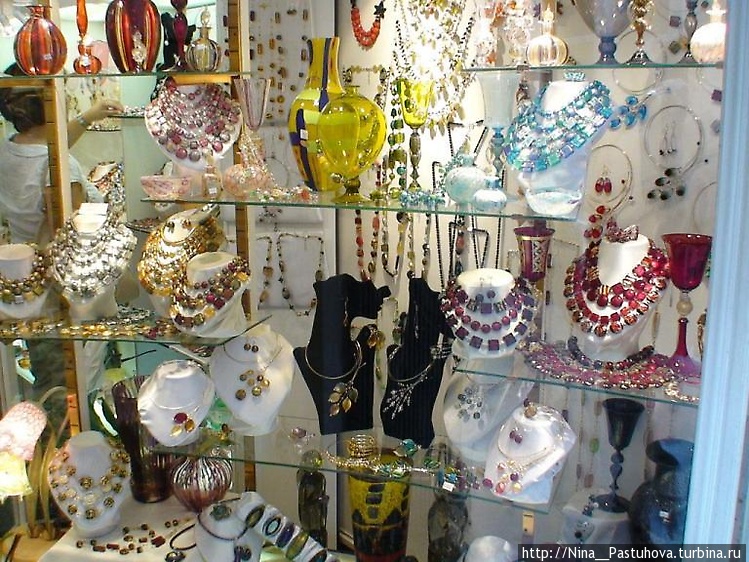 Поэтому мы спасаясь от палящего солнца идём вглубь города, узкими улочками, ведущими от набережной в различных направлениях, чтобы найти где пообедать, а затем с новыми силами направиться на изучение тех самых магазинчиков, лавочек, встречающихся арт-салонов. Прохладно, всё время тень, все условия для шоппинга, хотя это слово не подходит для Венеции. Скорее в этих магазинчиках как в музее или театре. Да и покупки здесь совершенно другие, в основном сувениры, бижутерия, конечно же муранское стекло, подарки для родных и друзей.