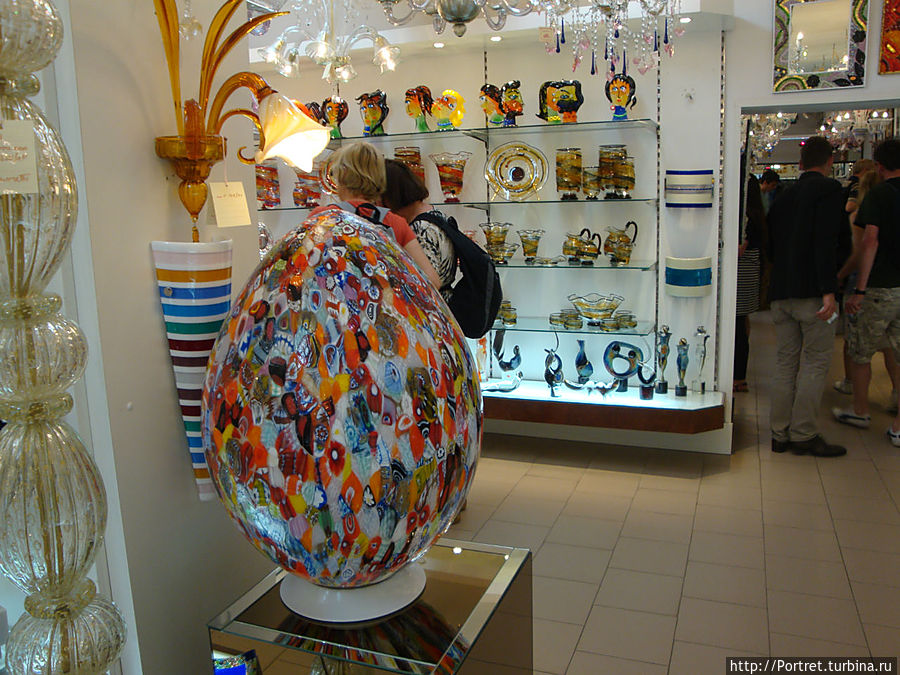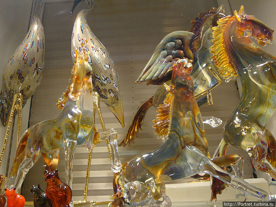 Один из крупных островов Венецианской лагуны—Мурано. Известен Муранским стеклом. Туристы, посещающие Венецию, как правило, стараются посетить одну из крупнейших фабрик. Там можно не только приобрести, как говорится, с пылу-жару готовую продукцию, но и увидеть в общих чертах процесс изготовления стеклянных изделий.