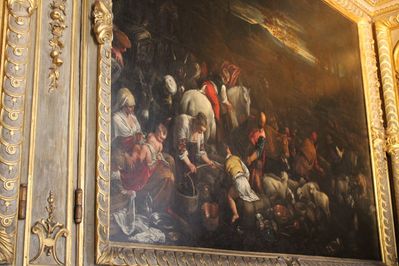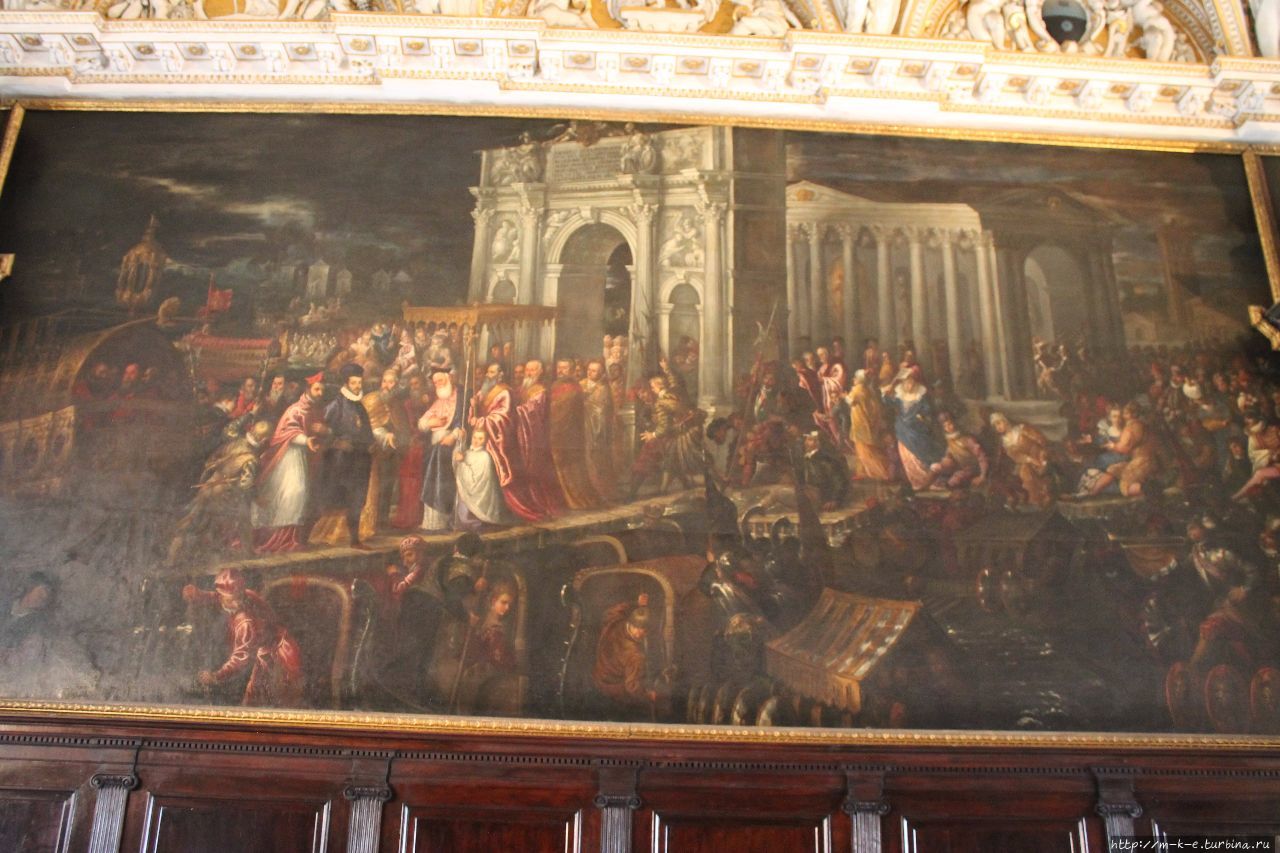 В следующих залах от работ известных авторов трудно оторваться. Здесь и Тинторетто, и Веронезе, и Бассано. Кроме них Тьеполо, Тициан, Иеронимус Босха и Джованни Беллини. А самое главное , что все эти шедевры расположены в исторических залах дворца и герои сюжетов художников, как бы переносят нас в те времена.