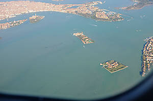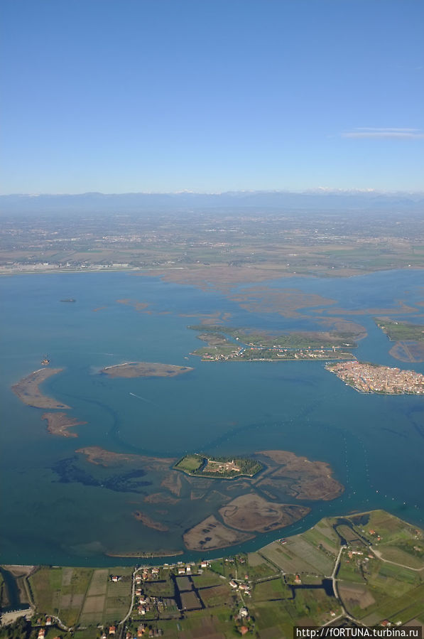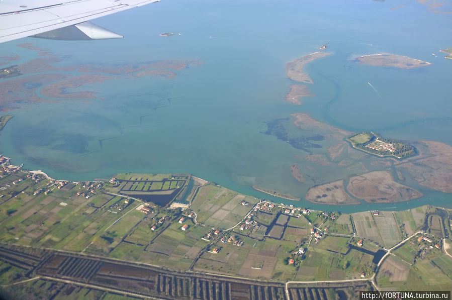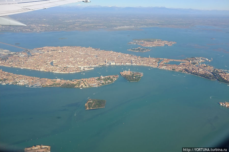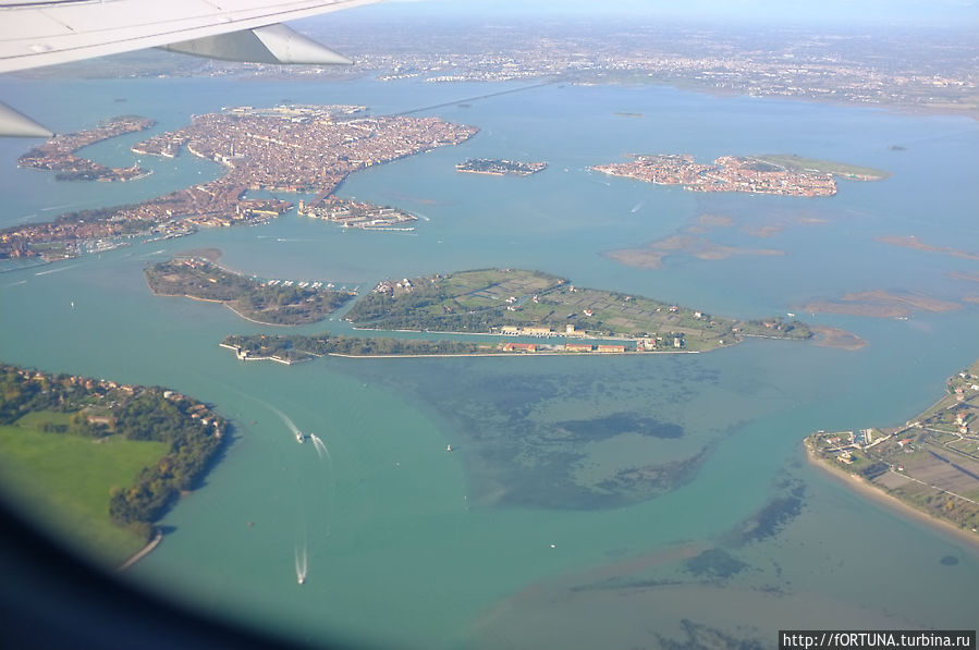 В день нашего отъезда-отлета стояла великолепная погода-солнце и ни одного облака.Уже сидя в самолете,набирающем высоту и были сделаны фото.Лагуна с такой высоты просматривается идеально.