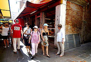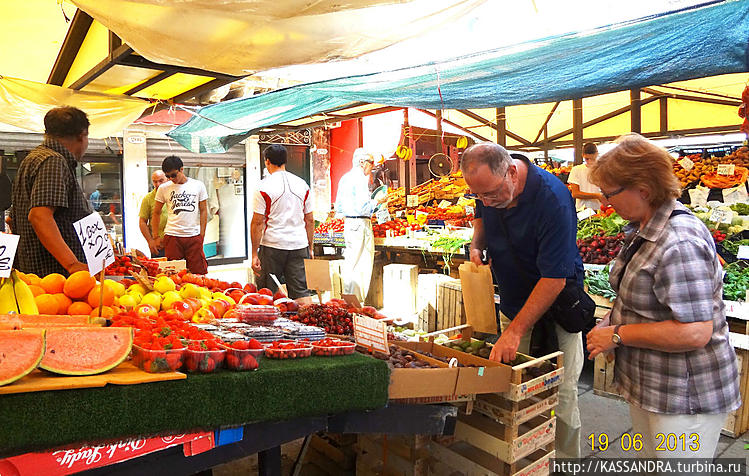 Цены на рынке немного выше, чем в городских магазинах, но качество и ассортимент товаров отличный. Кстати, цены на продукты на рынке указываются за полкило. Советую купить на рынке Риальто хотя бы фрукты и приобщиться к традициям венецианского рынка, заложенным средневековыми купцами.