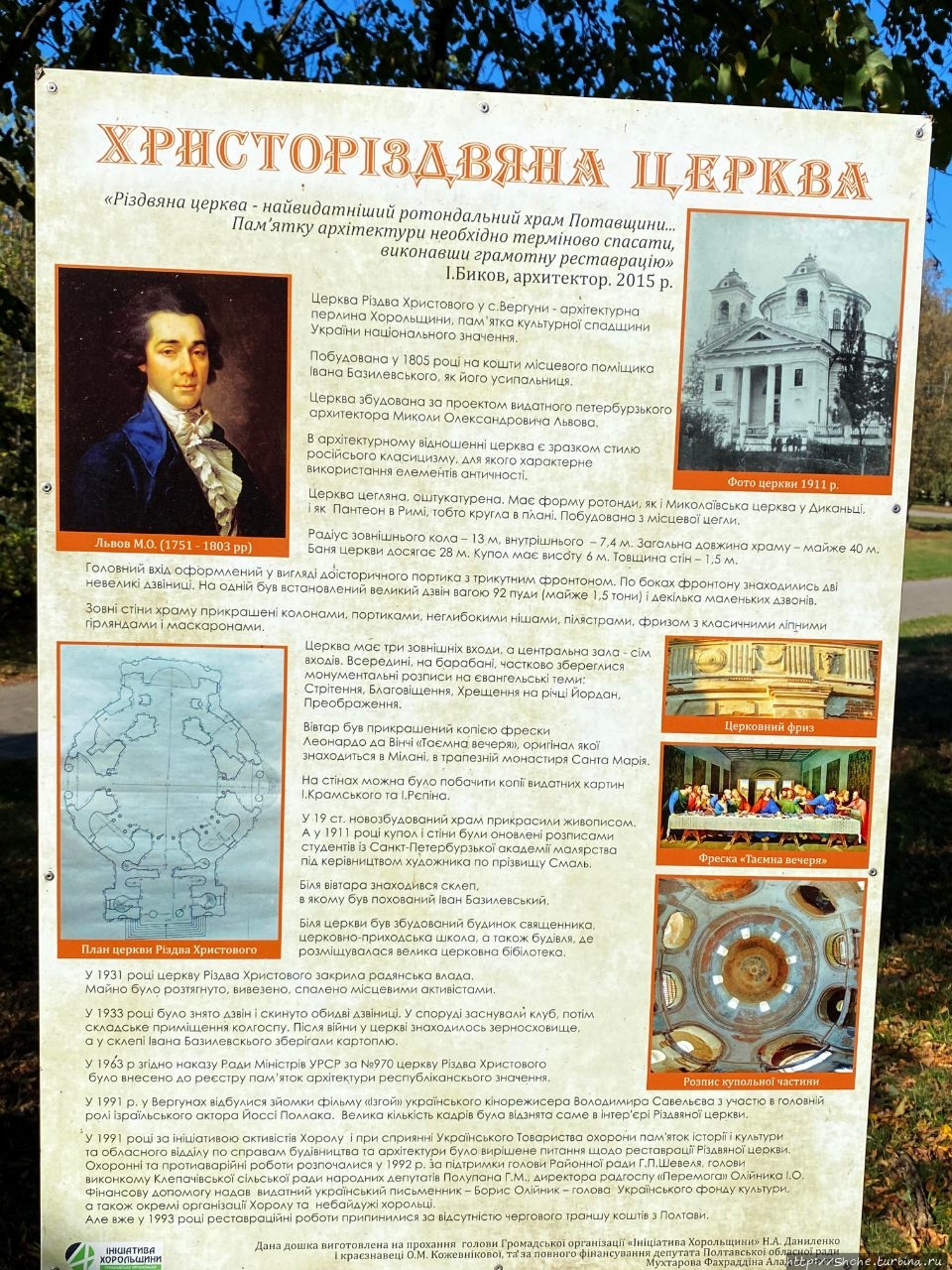 "Рождественский храм — самый выдающийся ротондальный храм Полтавщины. Памятник архитектуры необходимо срочно спасать, произведя грамотную реставрацию" — такими словами архитектора Быкова начинается рассказ о строении на инфощите. Согласен, спасать необходимо, а вот на счет реставрации лично я не уверен, ну разве что подчеркнуто грамотной.