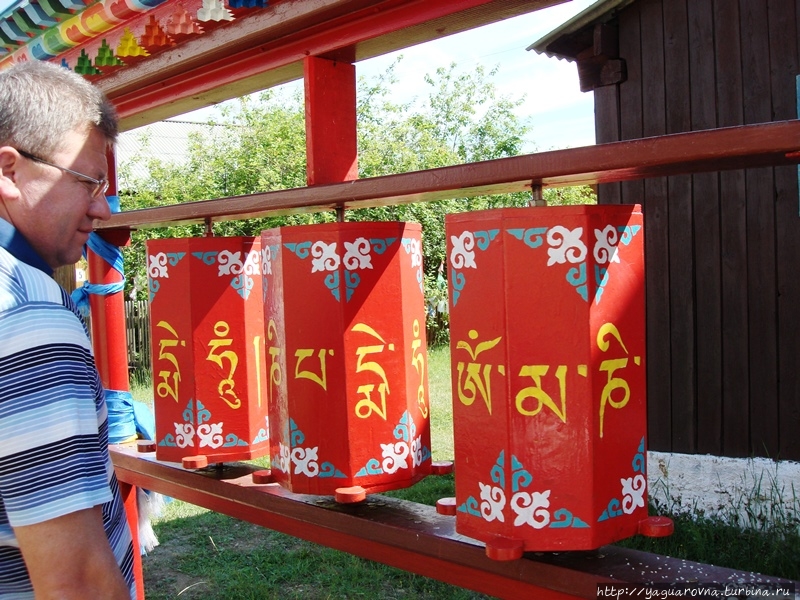 Осматривать территорию дацана нужно по часовой стрелке, т.е. слева направо, для этого проложена специальная тропинка. Такой круг называется “гороо”. По ходу движения встречаются молитвенные барабаны — хурдэ.
