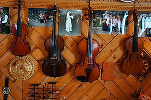 У гуцулов, вообще, музыкальных инструментов много разных. Но самые главные в гуцульском ансамбле это, на мой взгляд, скрипка и цимбалы. Скрипка – инструмент солирующий, а цимбалы – аккомпанирующий. И что интересно, в гуцульской музыке, в отличие от многих других культур, нет струнно-щипкового инструмента. Другими словами, нет аналога балалайки, или гитары, или кобзы какой-нибудь, на которой бренчать было бы можно. Но их функции как раз и исполняют цимбалы, инструмент струнно-ударный.
