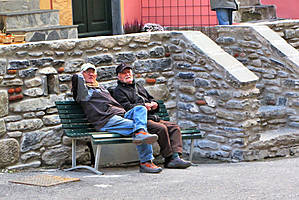 Забираемся на остатки укрепления на скале. Летом там наверняка открытое кафе, сидя в котором можно любоваться бирюзовой красотой Лигурийского моря, скалистого берега Вернаццы, закатом солнца, склоняющегося за горизонт, наслаждаться терпким вкусом Brunello и смотреть как в бокале играют последние лучи солнца, окрашивающие гранатовый цвет вина в яркий рубин, то есть предаваться Dolce Far Niente. В общем, это получился тост. Всё-таки 31 декабря сейчас, когда пишу эту заметку. :)