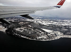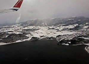 Аеропорт города Тронхейм находится довольно далеко, около 40 км от самого Тронхейма в городке Værnes, котороый в свою очередь расположился на берегу живописного фьорда Strindfjorden. В ясную погоду при взлете в иллюминатор можно наблюдать это фьерд с высоты...