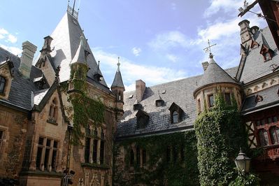 Конечно, к реальному барону замок не имеет ни малейшего отношения. Строительство его началось аж в начале XII века. Невероятно, но войны (за исключением некоторых разрушений во время 30-летней войны) и пожары обходили его стороной. Графы Вернигероде спокойно жили в нем до середины XV века, пока не осталось у них наследников мужского пола. Тогда крепость перешла к новым владельцам — графам Штольбергам, которые на протяжении столетий расстраивали и перестраивали замок в стиле барокко. В XIX веке это уже роскошная резиденция представительского типа, которая служит жильем все тем же Штольбергам аж до 1929 года, в котором они переехали в другое место, предоставив часть помещений экскурсантам. А с 1949 здесь музей, открывшийся после национализации (город находится на территории бывшей ГДР), который и предстоит нам посетить.