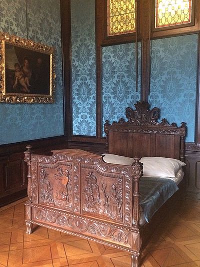 Как видите, внутри замок вполне себе жилой! Здесь даже останавливался на ночлег в 20-х годах прошлого века египетский король. Хотя довоенная обстановка до нас практически не дошла (мебель собирали по разным музеям), жилой дух здесь прекрасно сохранился!