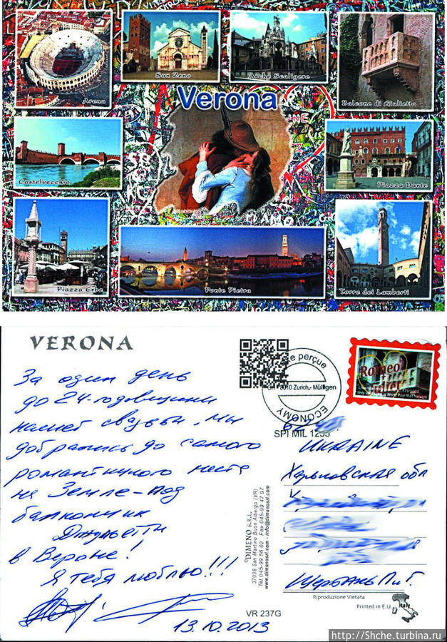 Почта Ромео и Джульетты, где можно было отправить письмо самому себе. Мы отправили два: себе и старшему сыну (который женился за пару лет до этого).