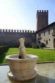 И еще одно. Я очень люблю большие музеи типа Лувра или Британского музея. Во-первых, за их собрания и, во-вторых, за то, что на их примере можно проследить, как на протяжении XX в. менялись представления о музейном деле. Так вот Кастельвеккио в этом отношении тоже повезло. После Второй мировой войны его реконструкцией занимался один из лучших итальянских архитекторов, Карло Скарпа, которому удалось практически вживить ультрасовременные элементы в плоть средневековых стен. В частности, конная надгробная статуя Кангранде I установлена на специальную платформу и как-бы парит в проломе между стен.