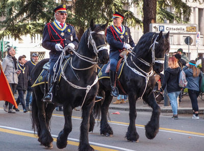 Я едва успела пристроиться на ступеньках Летнего театра (Estate teatrale Veronese), как началось красочное шествие и поехали первые телеги с ряжеными.