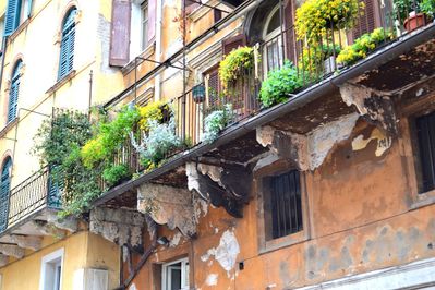 А ажурные балконы и балкончики, это отдельная песня Вероны! Даже если они и находятся в плачевном состоянии, но всегда украшены цветочными горшками и не только!