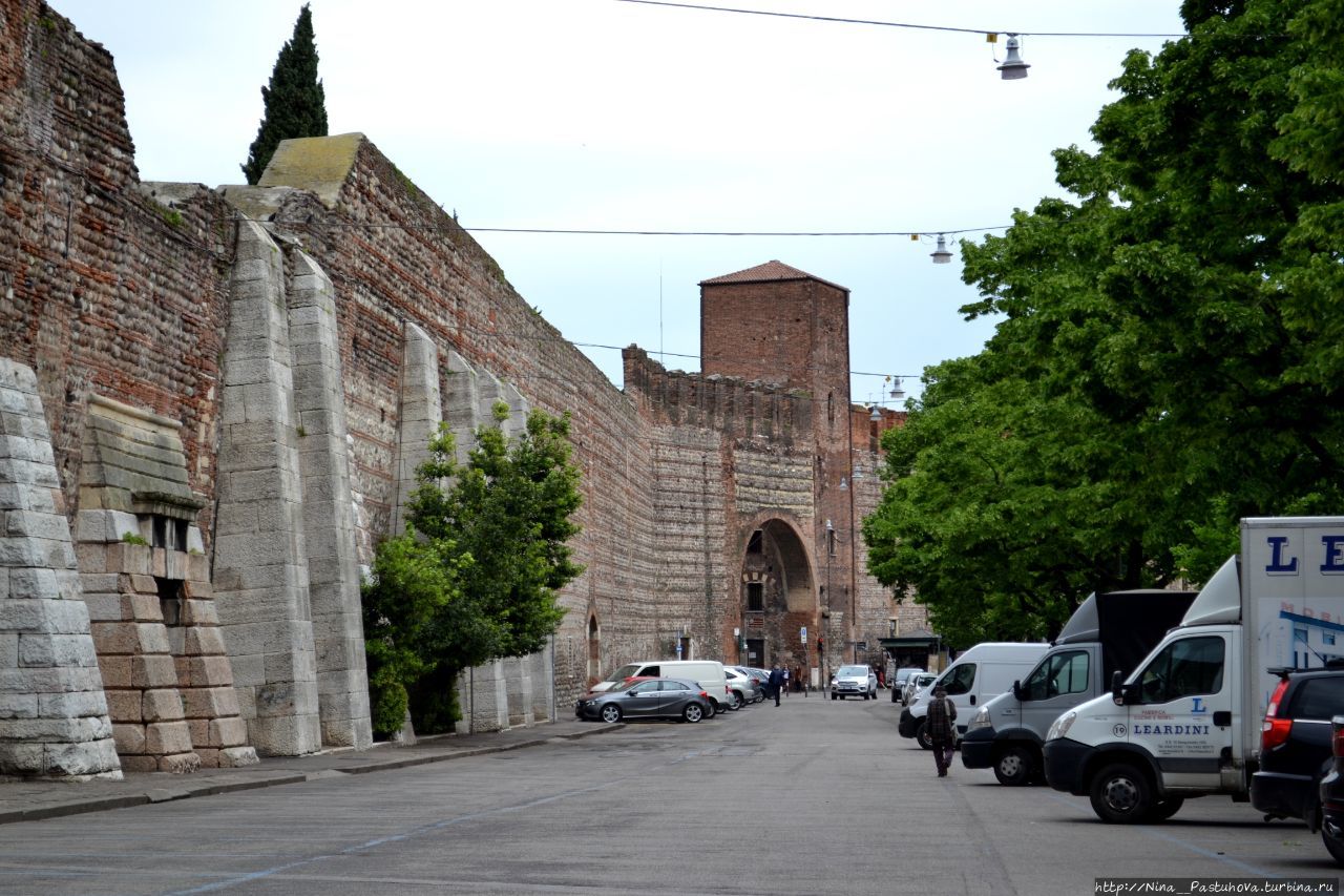 Время бежало назаметно, возвращалась на стоянку уже другим путём, вдоль крепостных стен, кстати, построены они были в разные эпохи. Здесь есть следы античных и средневековых построек 13 века. Часть стен и фортификационных сооружений достраивалась в 19 веке, в эпоху правления Габсбургов. Для всех правящих династий Верона была важным стратегическим пунктом для удержания владений на севере Италии.