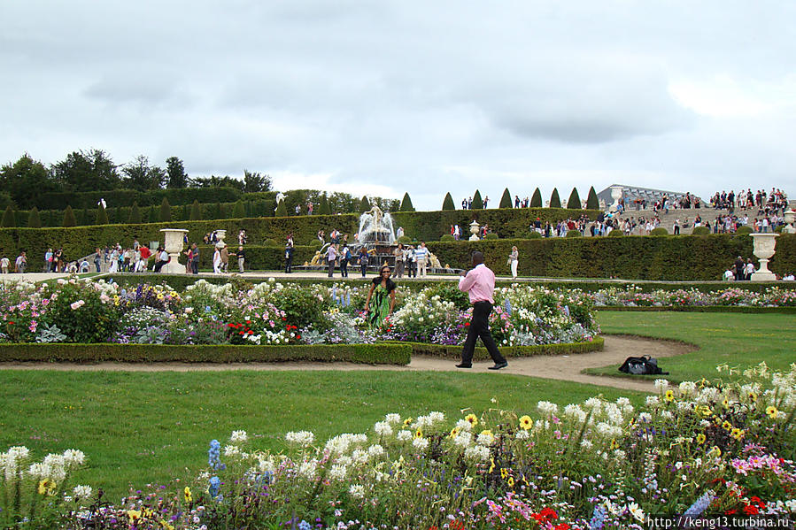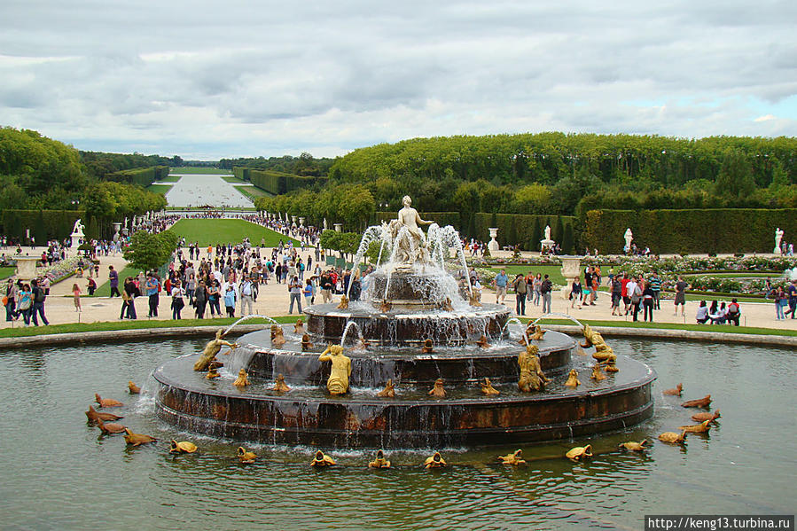 Но нас ему не остановить, мы идём смотреть на водную феерию версальских фонтанов, тем более, что нам стоит поторопиться, ведь в отличии от фонтанов Петергофа, работа местных расписана по минутам и чтобы успеть ко всем стоит воспользоваться специальной програмкой. Но мы не будем стремглав бегать от одного фонтана к другому, что успеем, то успеем.