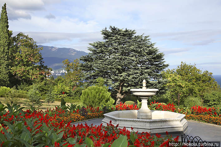 Название своё Ливадия получила в честь греческого города Левадия, поскольку первым владельцем этого места был командир греческого батальона Ламброс Кацонис, получивший его в подарок от Екатерины II. После смерти хозяина участок переходит сначала к полковнику Феодосию Ревелиоти, а в 1834 году — к польскому магнату графу Льву Потоцкому, который строит здесь большой дом и разбивает парк. После смерти Потоцкого в 1860 году его наследники наследники продают наследство и новым хозяином Ливадии становится император Александр II, который дарит её супруге — императрице Марии Александровне. И в 1862 году архитектором Ипполитом Монигетти начинается перестройка старого дома Потоцкого во дворец, который назвали Большим. Кроме Большого был построен еще и Малый дворец, который был утрачен во время войны. Императрица Мария Александровна очень любила Ливадию, принимала участие во всех преобразованиях имения и проводила здесь много времени, поскольку из-за болезни туберкулезом, ей был полезен крымский воздух.