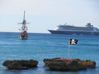 Впрочем, закралось у меня смутное сомнение, что чертяка на Кайманах не всамделишний. Все-таки и хвост, и рога замшевые... Да и раздавал он, не проклятия, а флайеры в сувенирный магазин...Так что я, сфоткался с деревянным.