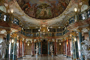 Этот великолепный библиотечный зал был построен в 1737- 1744 годах архитектором Кристианом Видеманом. К моменту его открытия — в 1744 году, монастырская библиотека обладала огромным, по тем временам, собранием рукописей и инкунабул в 15 тыс. томов. Скрипторий — мастерская по переписке рукописей, существовал в монастыре с момента его основания в 11 веке.