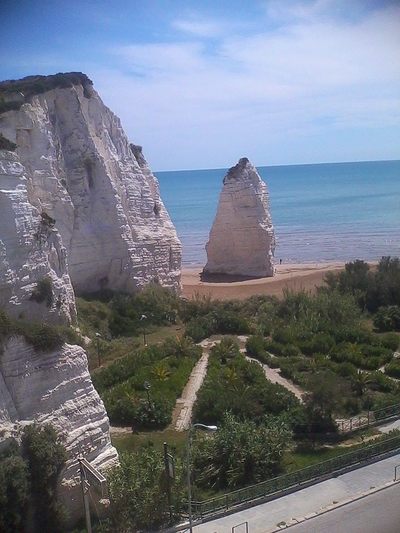 Vieste находится в провинции Foggia на берегу Адриатического моря. Вдоль дороги lungomare Mattei расположен городской пляж — ''spiaggia del Castello'', имеющий ещё название ''spiaggia Pizzomunno''. На левом конце пляжа находится каменный монолит высотой 25 метров называемый Pizzomunno.