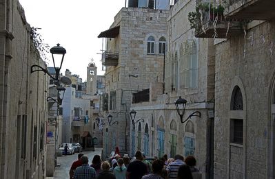 Ну и в силу планировки Вифлеема, иначе, чем пешком, большая группа туристов-паломников попасть в базилику и не может. По тем улицам с трудом еще можно проехать на легковом авто, а вот на автобусе уже никак...