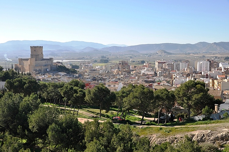Место просто великолепное. Вокруг зеленые сосны, на которых прыгают белочки, и горы. А с открывающейся со смотровой площадки панорамы, можно изучать весь город. Вот, например, как выглядит знаменитый Замок Аталайа (Castillo de la Atalaya).