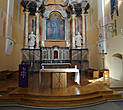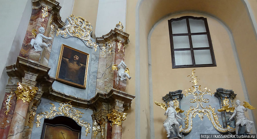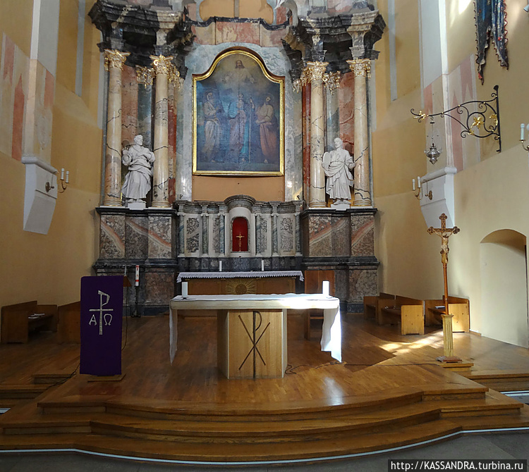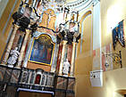 Интерьер костела украшают статуи святых Гиацинта и Доминика, выполненные в 18 веке из дерева. Статуи святых расположены в нишах. Алтарь костела дополнен образом Богородицы с младенцем Иисусом, работа 18 века.