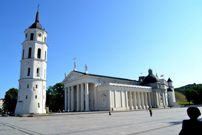 Недалеко от университета находится Президентский дворец построенный в духе классицизма.. Раньше он принадлежал епископату, землю под строительство даровал в честь крещения Литвы, князь Ягайло. Затем здесь была резиденция губернатора. Что интересно губернатором Вильнюса дважды был М.И. Кутузов, а в 1812 году здесь была резиденция Наполеона и отсюда он двинулся на Россию.