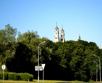 Отсюда видно и вершину одного из холмов, на которой красуется знаменитый вильнюсский памятник — три высоких белоснежных креста, установленных здесь в честь монахов- францисканцах. Литва из всех европейских стран дольше всех сохраняла язычество, поэтому после введения христианства, многие жители были не довольны этим и не смирились. Язычники распяли христианских монахов и бросили в реку. В память о них и были установлены в 17 веке кресты, которые ещё и символизируют силу веры и могущество христианской религии.