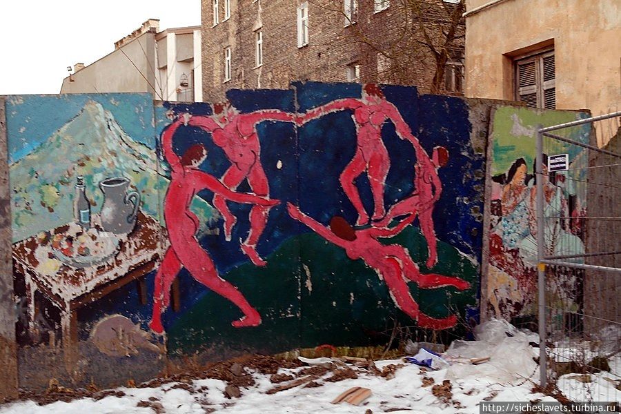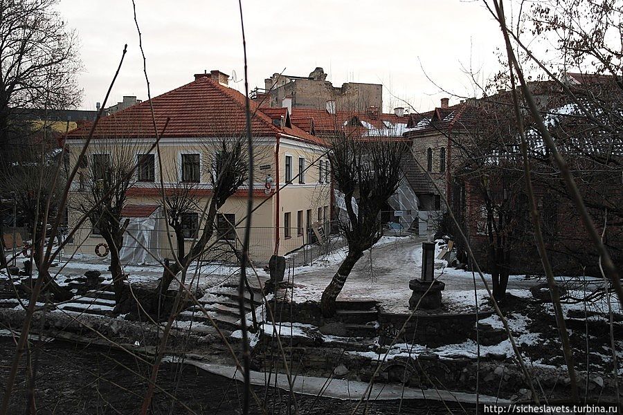 Конечно, зима – это не самое лучшее время для того, чтобы создавать собственное мнение о том или ином посещенном месте. Особенно, если это республика художников и поэтов, живущая праздниками и фестивалями. И, честно говоря, на нас ее антураж произвел достаточно гнетущее впечатление. Да, кое-где можно увидеть свежий ремонт и какие-то очаги жизни, но большая часть Ужуписа, как нам показалось, — это достаточно депрессивное место с полуразрушенными зданиями, облупившейся штукатурной, покосившимися заборами, нестройной брусчаткой и складами дров на задних дворах жилых домов. Мы даже меж собой прозвали эту республику Ужупинском.
