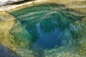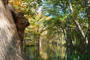 Речушка начитается прямо здесь, в парке, из артезианских источников которые бьют из под земли. Вода абсолютно прозрачная и всегда одинаковой температуры 24 градуса. Для Техаса это очень важно, к середине лета во многих озерах температура воды переваливает хорошо за тридцать и купаться становиться не приятно. Тогда здесь, в Голубой Дыре, становится многолюдно.